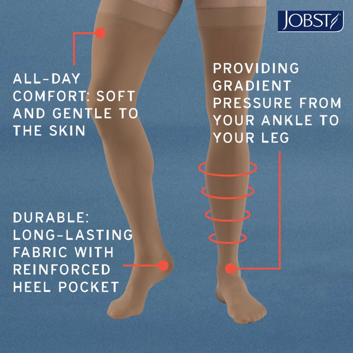 ถุงน่องรัด เส้น เลือดขอด รุ่น JOBST Relief Thigh High w/ Silicone Top Band (ของ แบรนด์ JOBST) คือถุงน่องทางการแพทย์แบบ “ถึงต้นขา” (thigh high) ที่ออกแบบมาเพื่อ การบีบรัดแบบมีเกรเดียนท์ (graduated compression) พร้อมแถบท็อปที่มีซิลิโคนช่วยยึดให้ถุงน่องติดทน ไม่เลื่อนลงระหว่างวัน