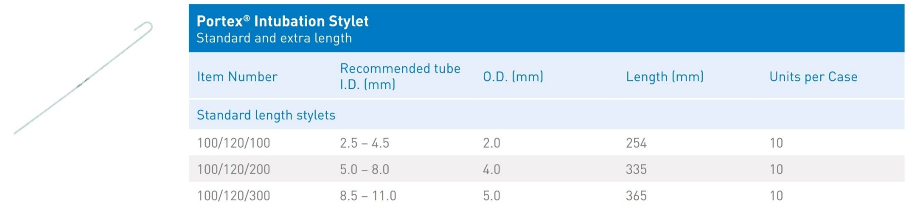 Tracheal Intubation Stylet - Portex (มี 3 ขนาด S-M-L) (ราคาต่อ 1 อัน)