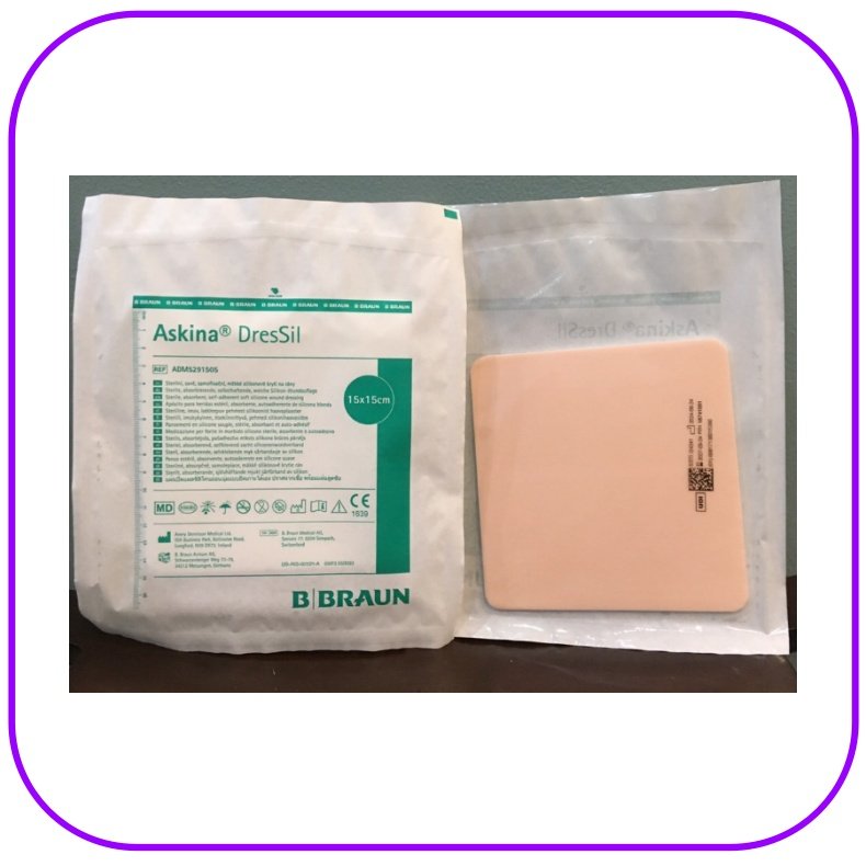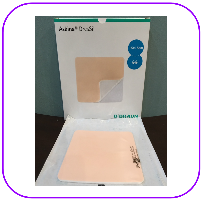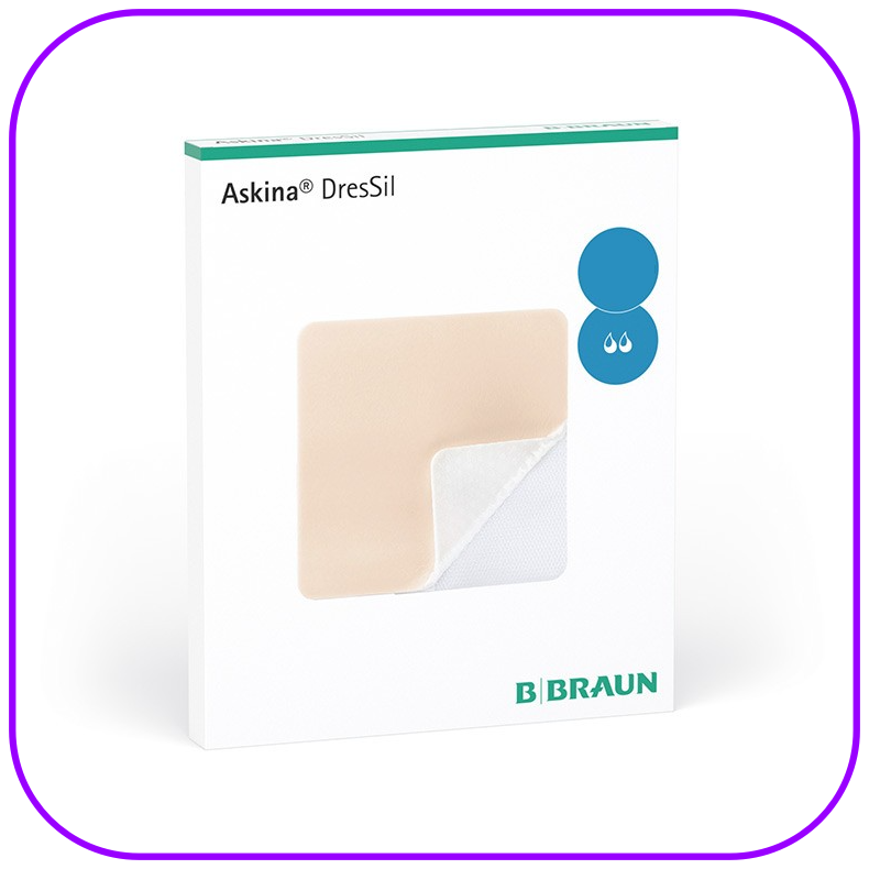 Askina® DresSil เป็นแผ่นปิดแผลซิลิโคนเนื้อนุ่มแบบไม่มีกาวขอบ สามารถยึดติดได้เอง โดยดูดซับสารคัดหลั่งจากแผลผ่านรูพรุนของซิลิโคน และช่วยคงสภาพแวดล้อมที่ชุ่มชื้นเพื่อส่งเสริมการหายของแผล