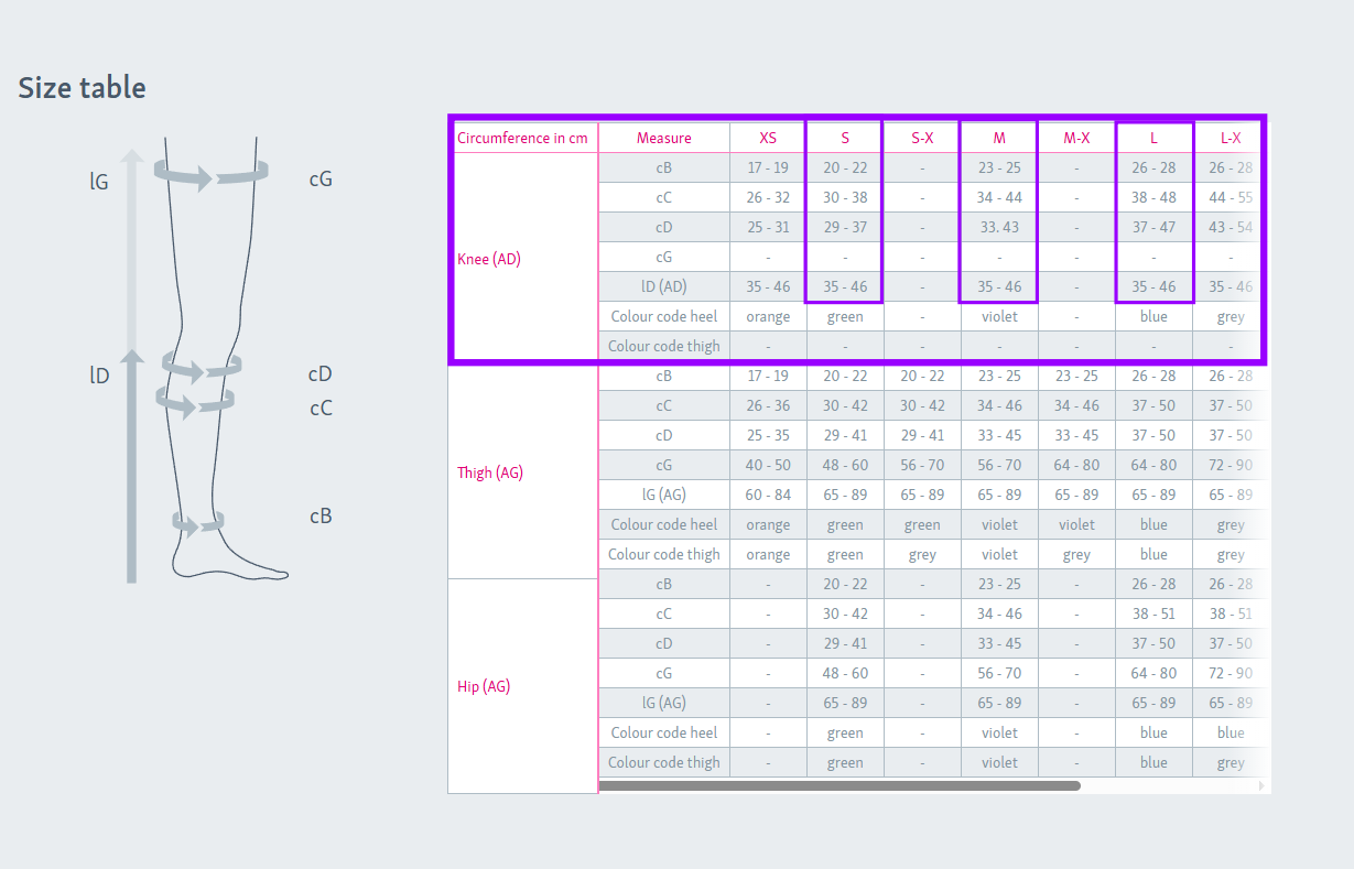 หมายเหตุ: mediven thrombexin 18 เหมาะกับเส้นรอบวงต้นขาสูงสุด 100 ซม.