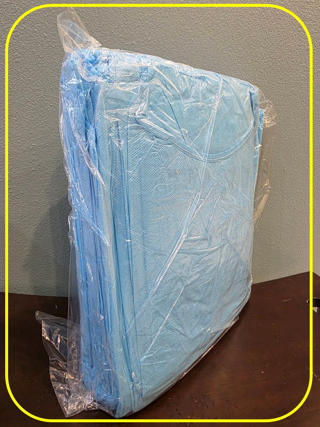 1. เสื้อกาวน์ Isolation Gown ผลิตจากวัสดุสังเคราะห์ (Non-woven Material) Polypropylene Spunbond (PPSB) เคลือบด้วย Polyethylene น้ำหนัก 40 gms เนื้อผ้าสามารถกันสิ่งปนเปื้อน กันเลือด แอลกอฮอล์และกันน้ำได้