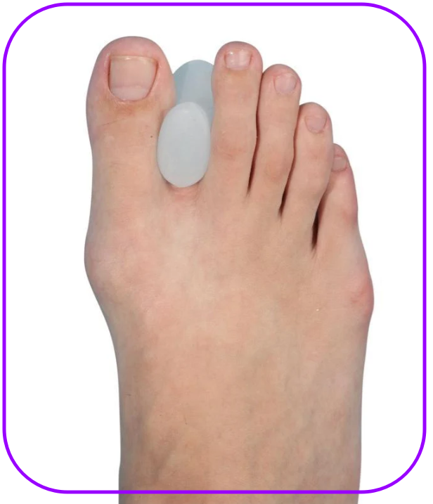 ตัวแยกนิ้วเท้าแบบซิลิโคน (คู่) ถูกออกแบบตามสรีระเพื่อช่วยแยกนิ้วเท้า ลดแรงกด และช่วยจัดเรียงนิ้วให้อยู่ในตำแหน่งที่เหมาะสม ความเสียดสีระหว่างนิ้วเท้าที่ซ้อนทับหรือบีบชิดกันอาจทำให้เกิดความไม่สบายหรือการระคายเคือง ตัวแยกนิ้วเท้าช่วยให้นิ้วโป้งอยู่ในตำแหน่งที่สบายขึ้น และลดการเสียดสีระหว่างนิ้วที่ซ้อนกันหรือบีบชิดกัน