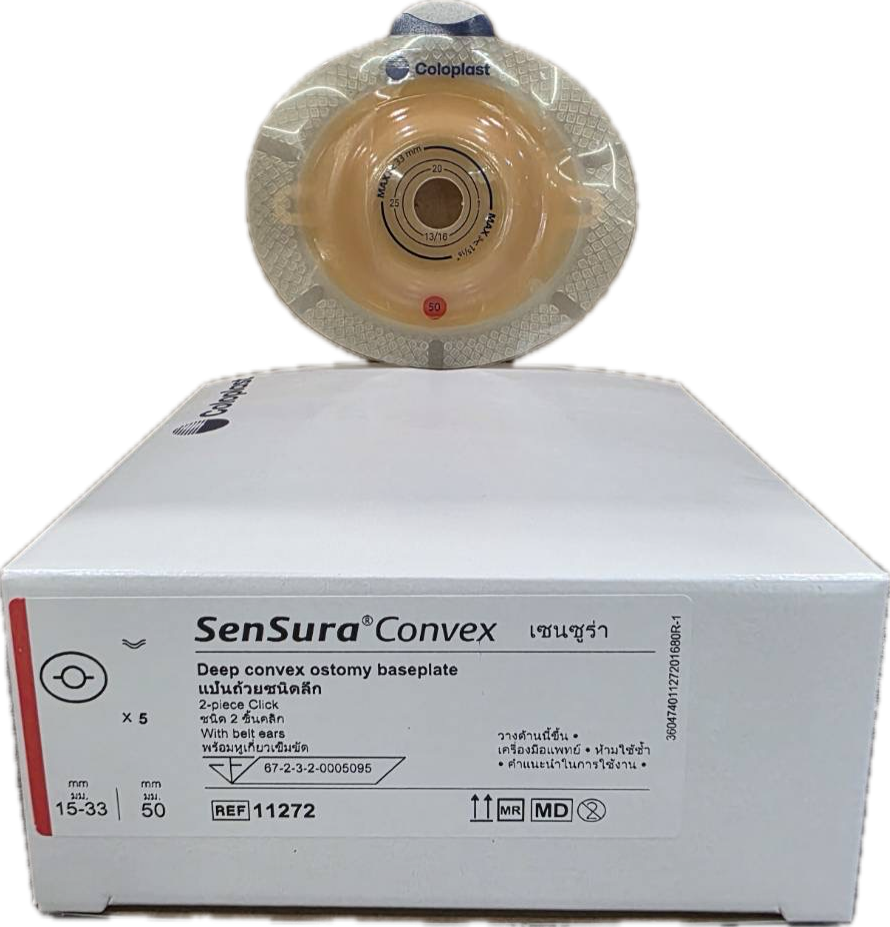 วัตถุประสงค์การใช้งาน: แป้นติดหน้าท้องของลำไส้/ทวารเทียม แบบนูน เป็นแป้นที่ติดกับผิวหนัง มีลักษณะนูน ช่วยป้องกันผิวหนังบริเวณรอบ ๆ จากอุจจาระหรือปัสสาวะ และมีด้านหนึ่งใช้สำหรับติดถุงรองรับอุจจาระหรือปัสสาวะ