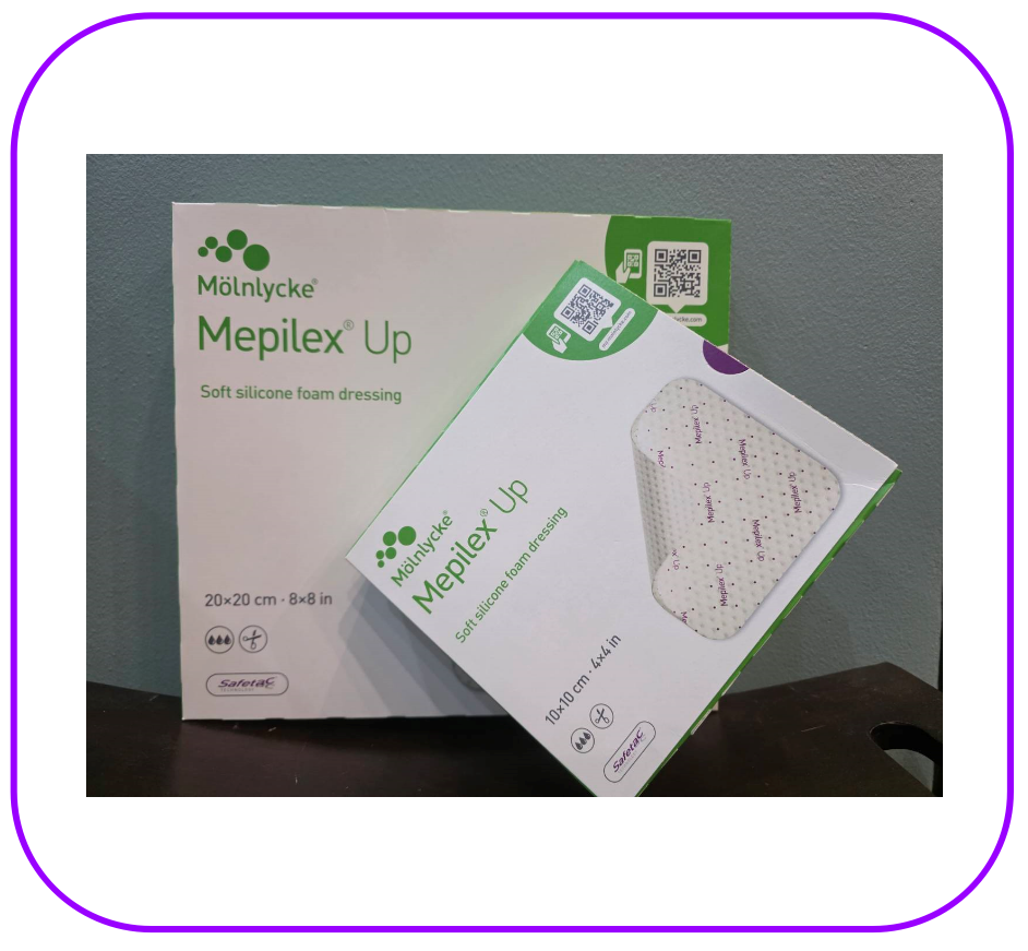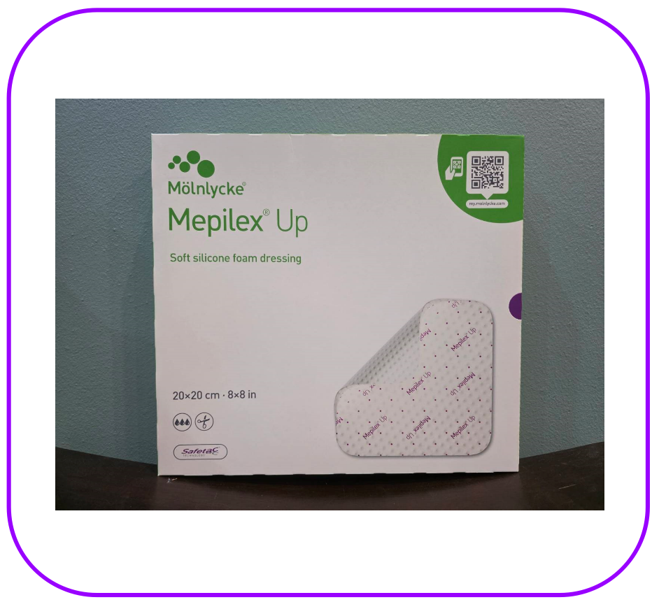 Mepilex® Up เป็นวัสดุปิดแผลโฟมชนิดไม่มีขอบ (non-bordered) รุ่นใหม่จาก Mölnlycke โดดเด่นด้วยพื้นผิวแบบ Dimpled ที่ช่วยกระจายสารคัดหลั่งได้ดีเยี่ยมทุกลิศทางรวมถึงต้านแรงโน้มถ่วง ช่วยเพิ่มการดูดซับของเหลว ลดความเสี่ยงในการรั่วซึมและการเกิดผิวหนังเปื่อยยุ่ย (maceration) มาพร้อมเทคโนโลยี Safetac® ช่วยลดความเจ็บปวดขณะเปลี่ยนแผล